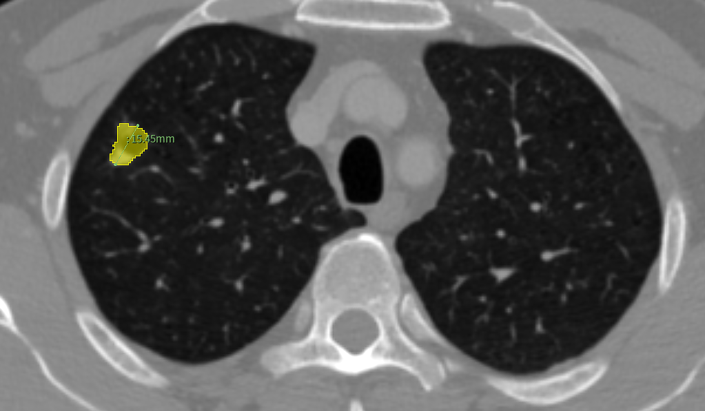 (CT扫描中,识别出1个结节)