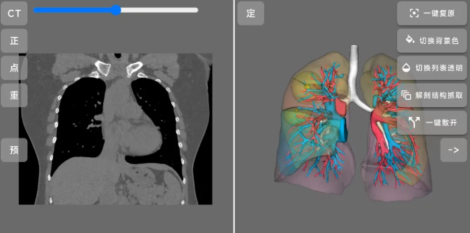 (左:CT扫描信息,右:阿梵D三维重建后效果)